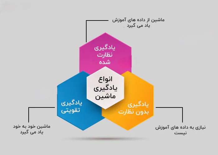 سه نوع اصلی یادگیری ماشین وجود دارد که هر یک برای مسائل خاصی استفاده میشوند: