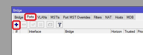 حالا به تب Ports بروید و با کلیک روی علامت (+)، یک Bridge Port جدید اضافه کنید.