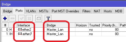 در میکروتیک، اینترفیس بریج یک رابط مجازی است و هر رابط فیزیکی که به آن افزوده شود، بهعنوان Bridge Port شناخته میشود. این Bridge Portها همانند سوئیچ عمل میکنند؛ بهطوریکه ورود ترافیک به یکی از آنها باعث ارسال آن به سایر پورتهای عضو همان بریج خواهد شد. اگر به رابط بریج یک آدرس IP اختصاص داده شود، آن آدرس برای همه Bridge Portهای عضو قابل استفاده خواهد بود. برای مثال میتوان بریجی با نام Master_LAN ایجاد کرد و پورتهای Ether2 و Ether3 را به آن افزود. در ادامه نیز با تعریف یک آدرس IP روی این رابط مجازی، همه پورتها در همان شبکه قابل استفاده خواهند بود.